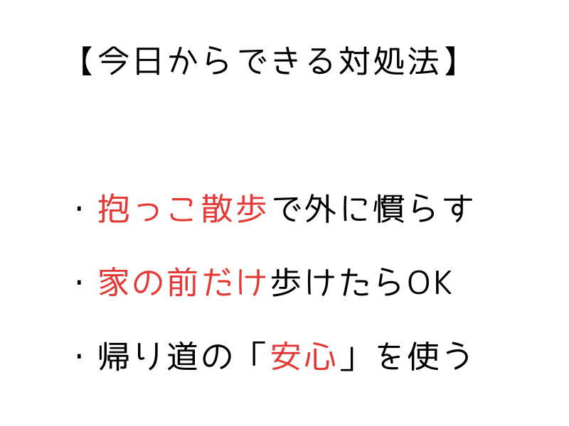 我が家の笑みちゃんも、最初は外に出るとピタッと固まっていました。